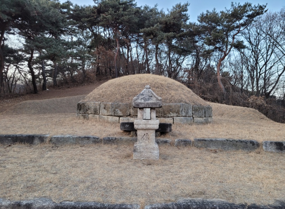 〔신빈신씨 묘소 : 장명등 사방으로 信寧宮主라고 음각되어 있다〕